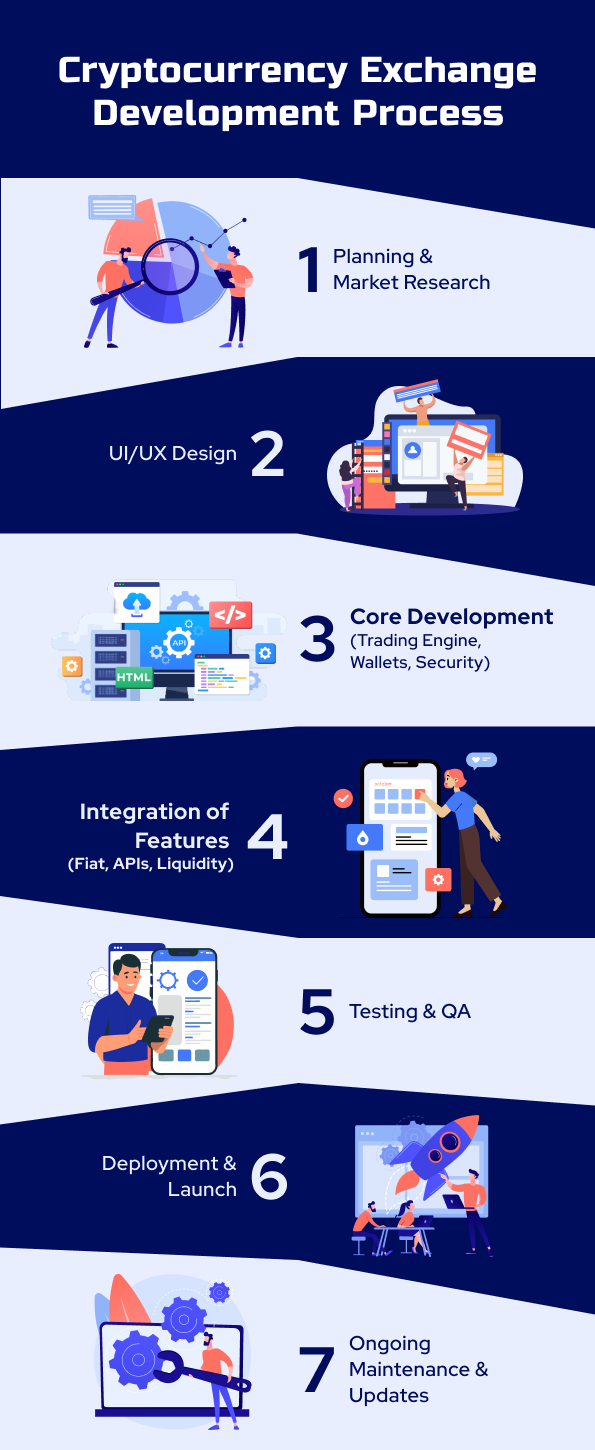 Cryptocurrency Exchange Development is the process of building a digital asset trading platform where users can buy, sell, and exchange cryptocurrencies. A well-developed platform usually includes: